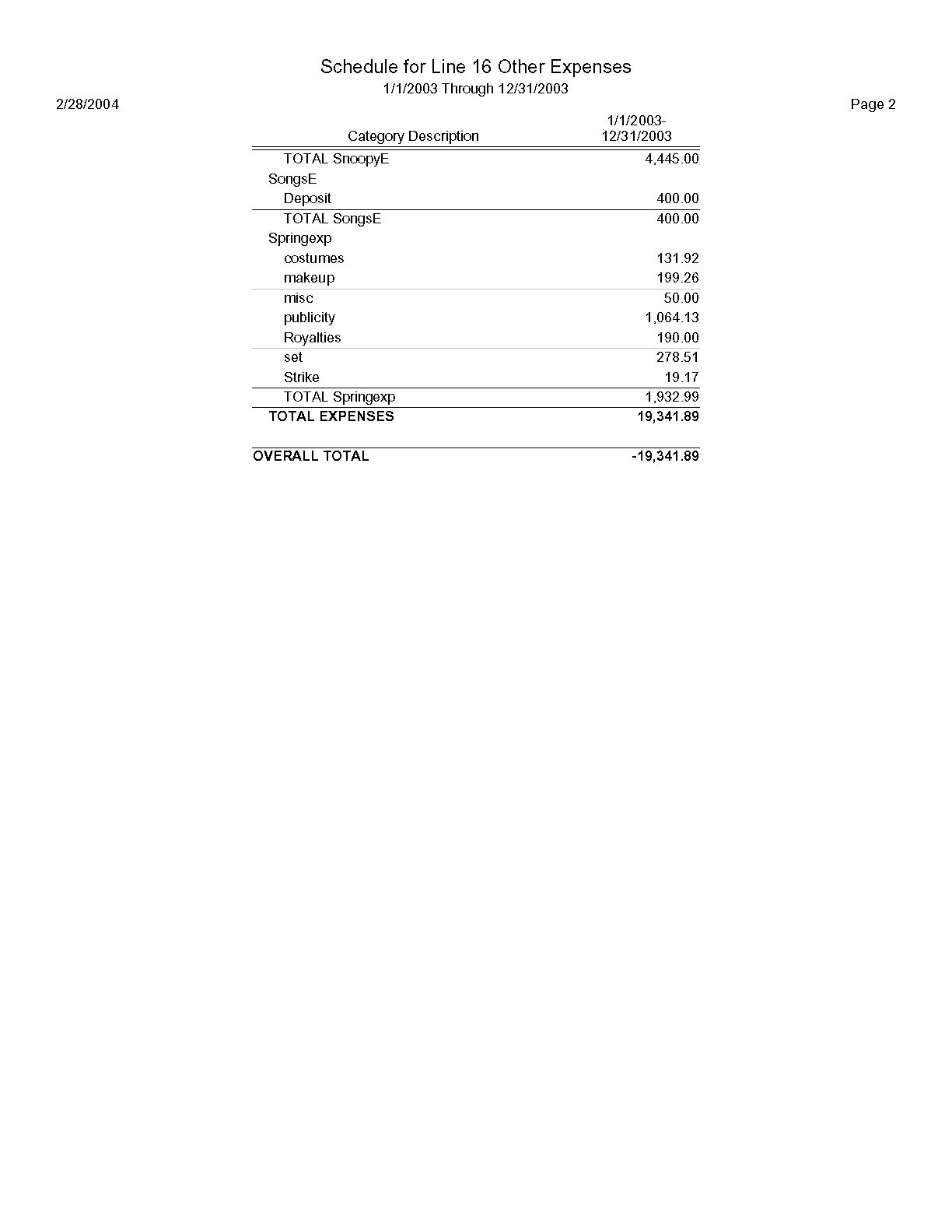 2003 990EZ and supporting schedules