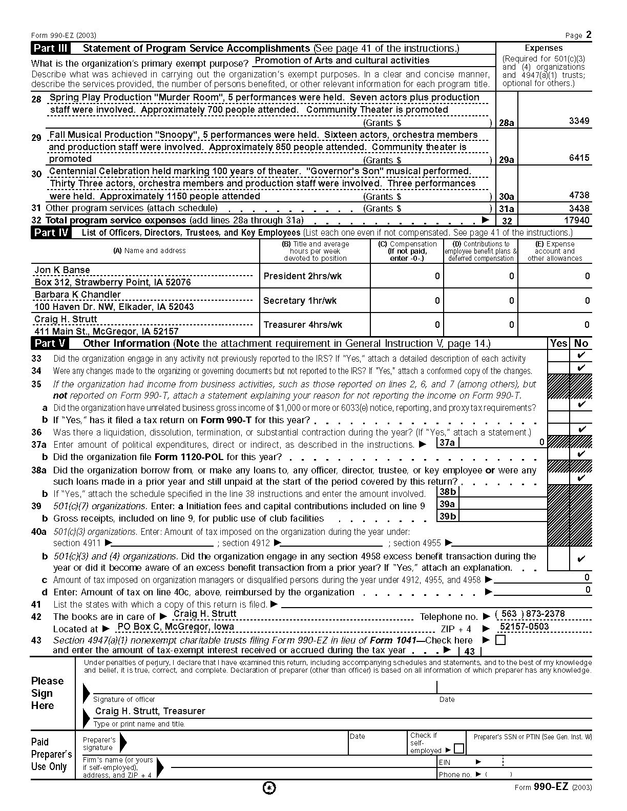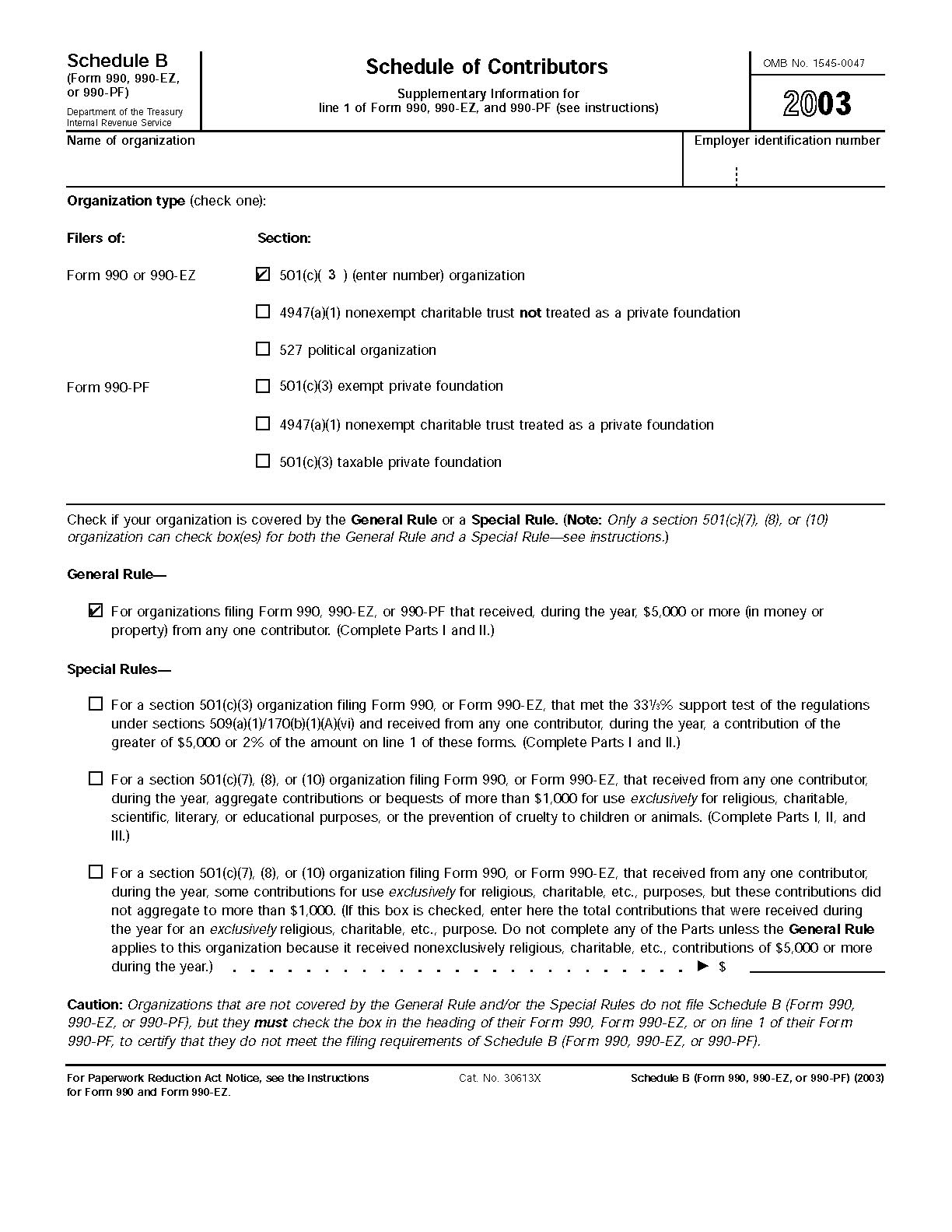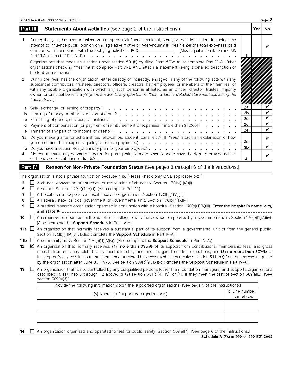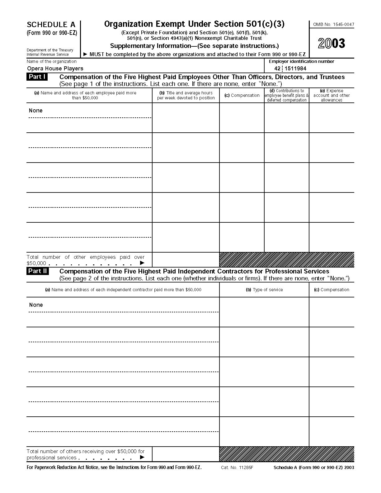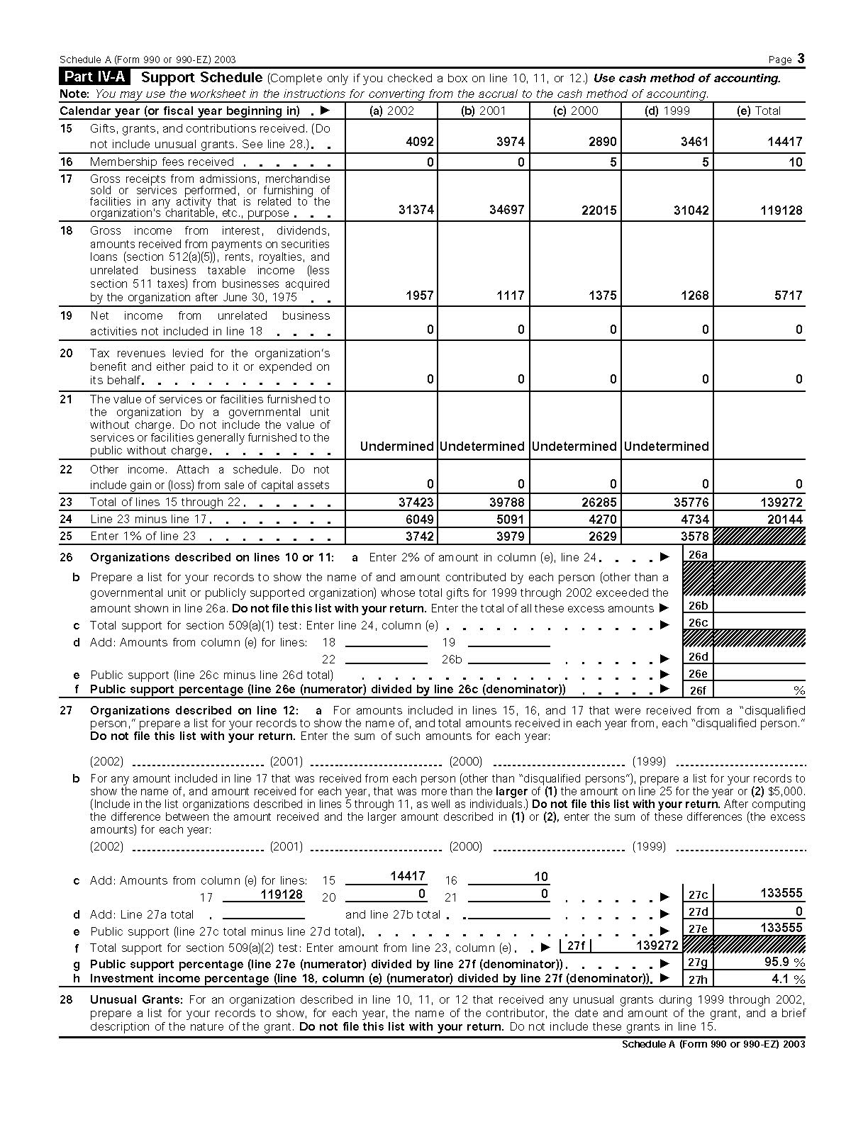 2003 990EZ and supporting schedules